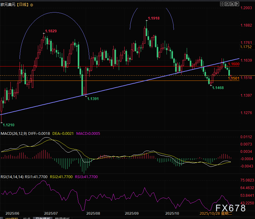 汇通财经APP讯——周四(11月20日)亚欧时段,受美国劳工局补发的9月非农数据影响,欧元兑美元小幅反弹,整体跌幅收窄,亚市早盘汇价受到美联储会议纪要影响,汇价走低至1.1509测试了1.1500支撑。目前交投于1.1519(-0.15%)欧元区近期无关键数据发布走势主要受美元指数影响。