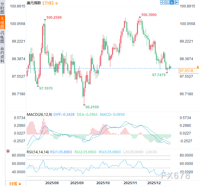 汇通财经APP讯——美国最新公布的GDP数据虽未显示技术性衰退,但深入剖析其构成后可以发现,当前经济增长存在严重的结构性缺陷和不可持续性。这种“表面增长、内在虚弱”的经济状态,或将对美元指数构成复杂而偏空的中长期影响。周一(12月29日)亚市早盘时段,美元指数于97.95附近窄幅震荡,位于10月初以来低点(97.75)附近上方不远处。